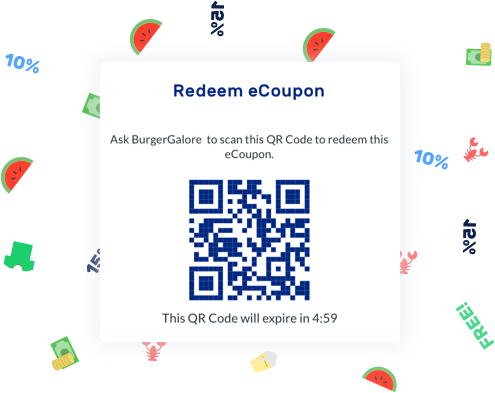 Ask the merchant to scan the QR Code to redeem the eCoupon. Make sure to scan it within the 5 minute time period. Otherwise, you’ll have to generate a new QR Code.